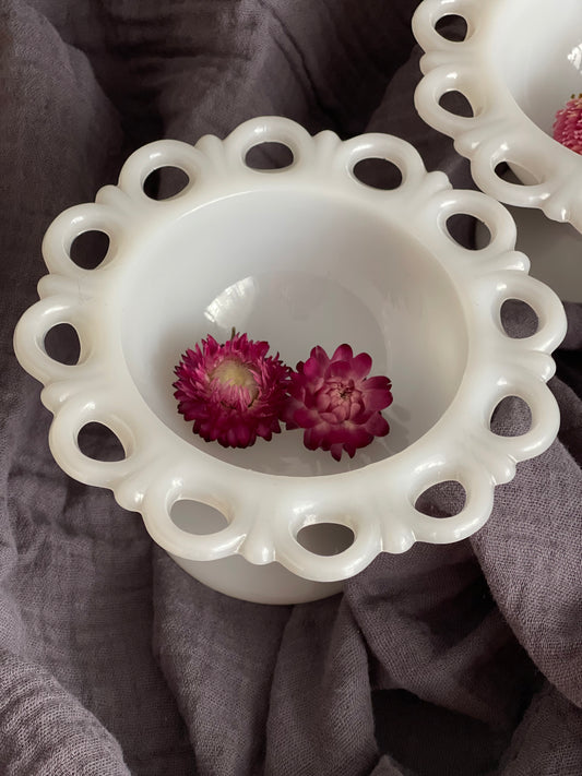 Vintage Milk Glass Eyelet Candy Dish on Pedestal