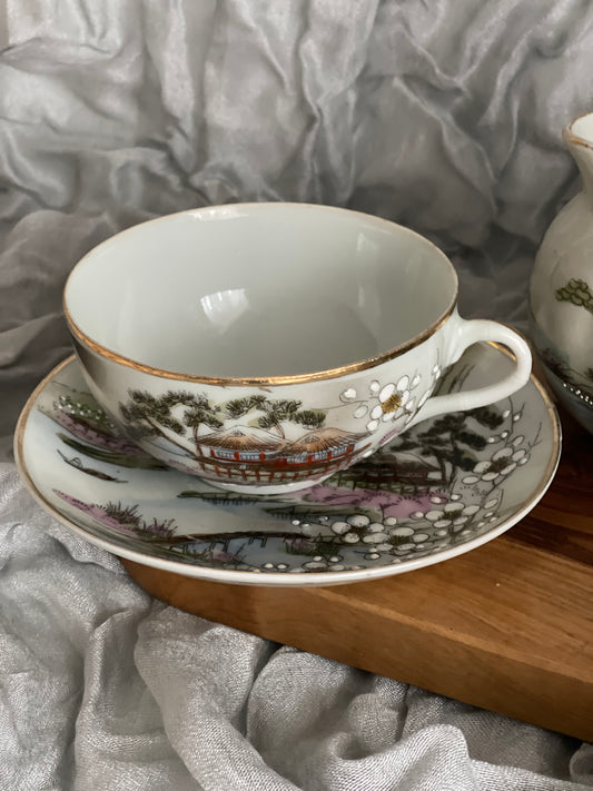 Vintage Nippon Japan Hand Painted Teacup & Saucer and Creamer